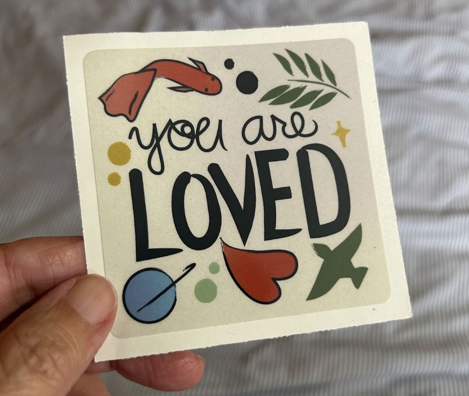 In the 20ish minutes that ensued, I asked her about her thoughts over this election. We talked about goals. About calling on guides and spirituality. About being neurotic and embracing it. About the writing process and how her parents drilled in her self-discipline. If we had been characters in a movie when the two friends (love interests?) had just met, the director would have surely swirled the crowd around us and played music and silenced our voices so the audience would think - oh…sparks are flying between these two. That’s what it felt like. I felt her accept me - and maybe even be inspired, too. We kept eating from the same take out container. How was I so lucky and who would believe me without a photo, I wondered. But this moment felt too connected to ask for a selfie. And it was. Then she reached into her small bag and handed me something: a little sticker that read “You Are Loved” before turning to another person who had approached her. I felt my spirit guide whisper “That was your special moment” and knew our dinner was over. I had gotten what I had hoped for and didn’t want to negotiate for more.